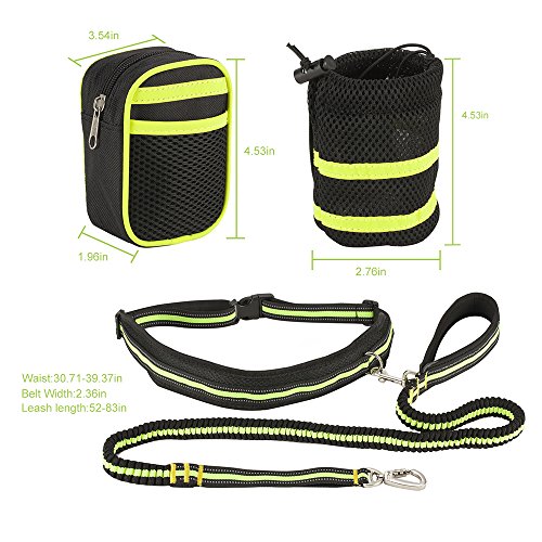 Dimension: Waistband: 1.9 x 15.48 inch- 40 inch (W x L) Zipper bag: 3 x 2 x 4.5 inch (W x L x H) Bungee leash: 50 inch