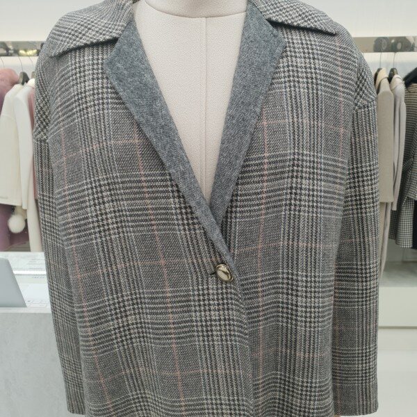 래글런 소매에 오버핏으로 여유있게 착용하실 수있는 핑크체크 코트입니다