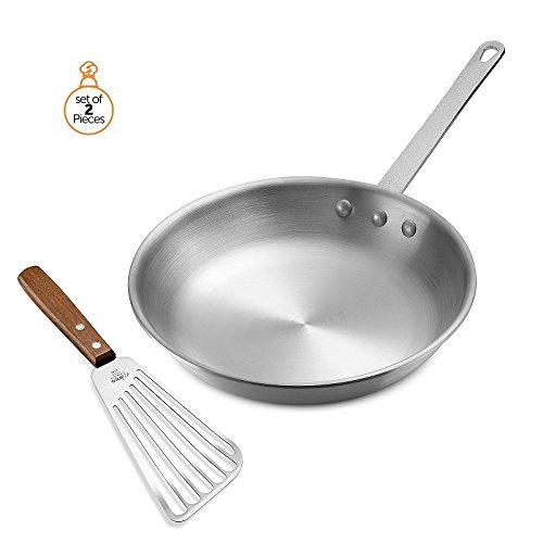 COOKWARE SET OF ALUMINUM FRYING PAN & FISH SPATULA: Royal Industries brings you a set of 10-inch aluminum frying pan and fish spatula with 6.5-inch blade making your cooking easy, fast and convenient.