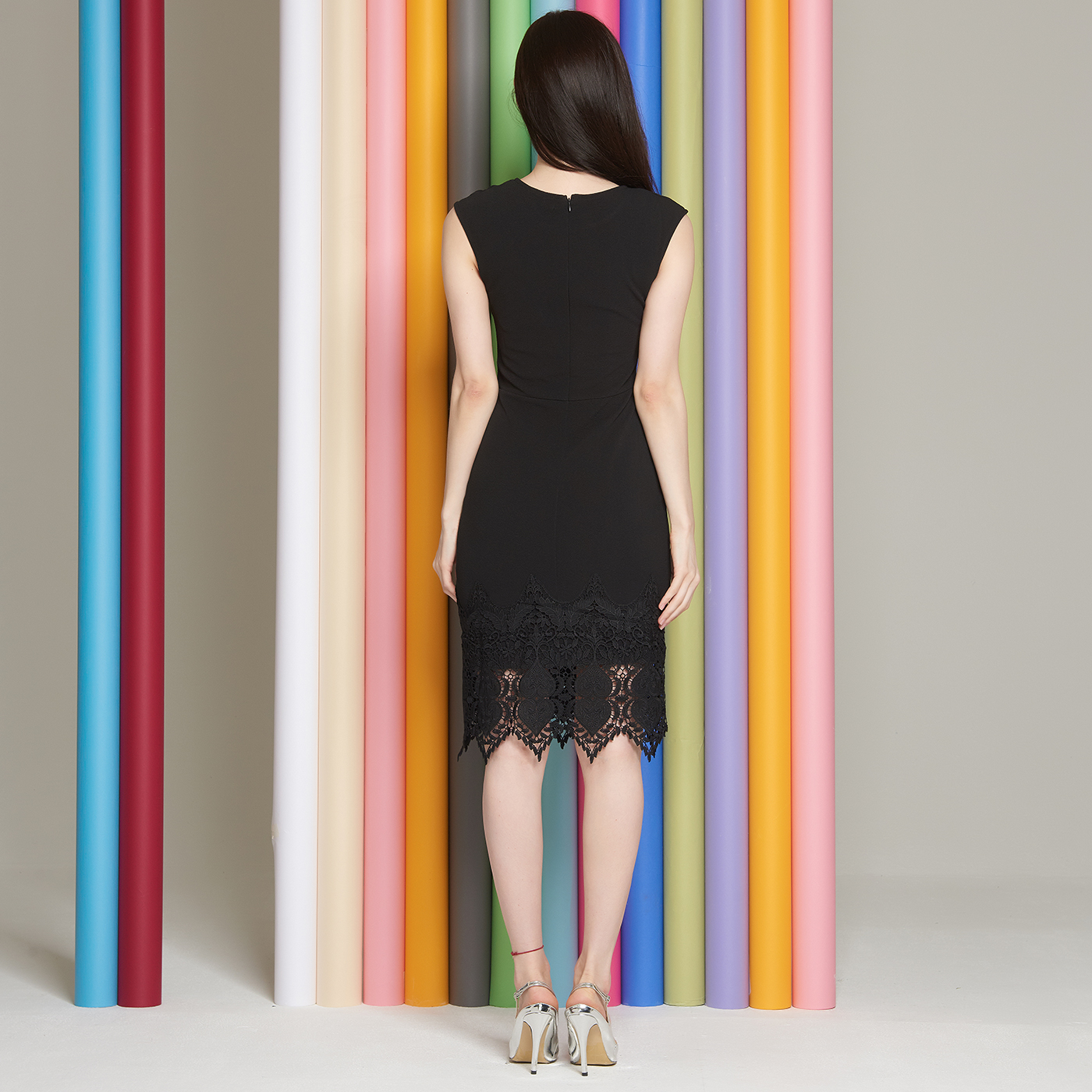 밑단 레이스가 예쁜 슬림한 디자인의 캡소매 원피스입니다.