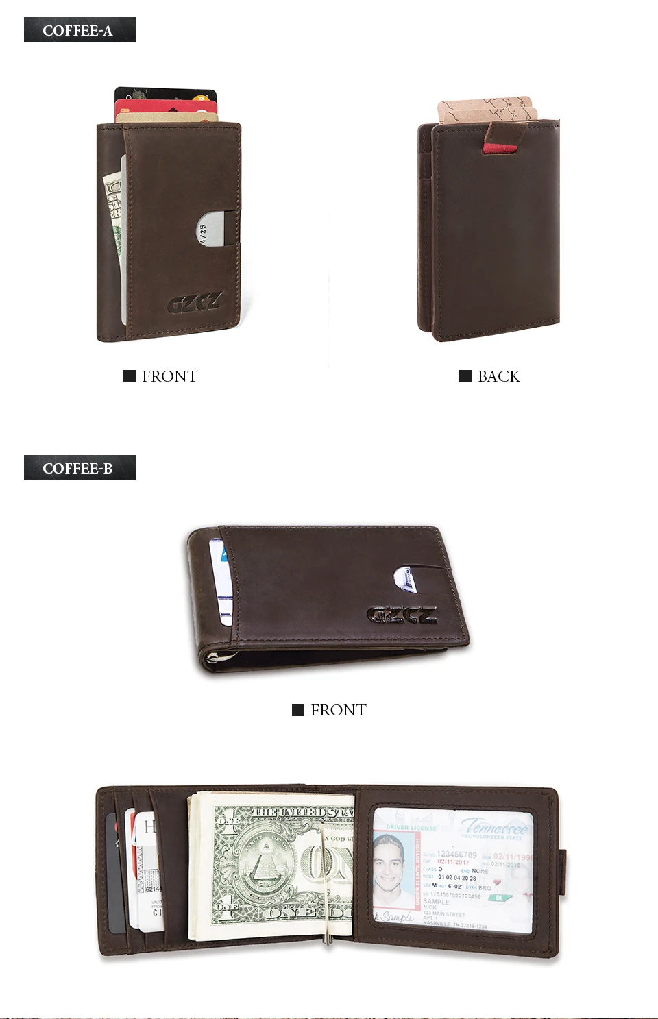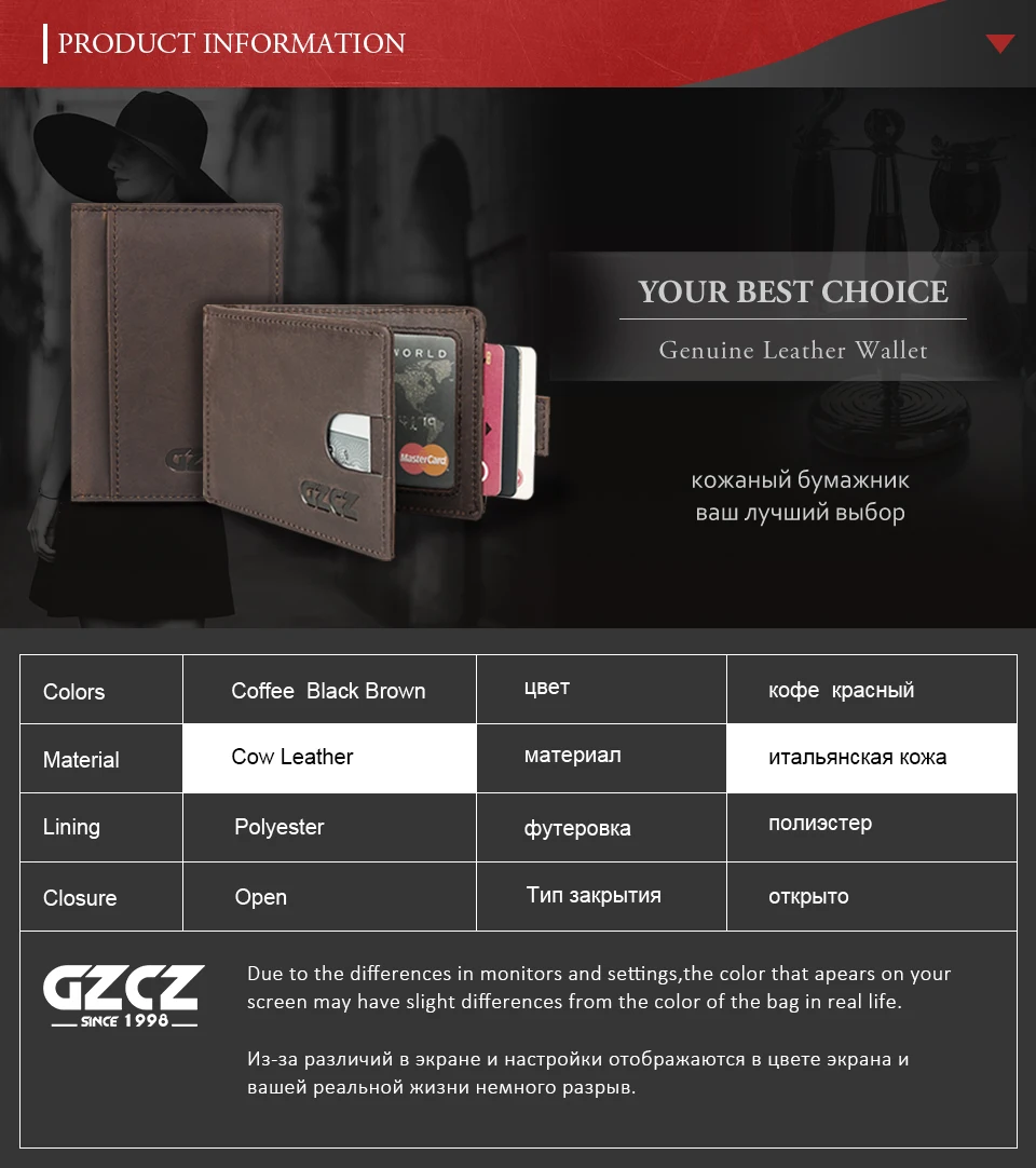 Model Number:GZ0021-Coffee-A (Male Wallet/Portomonee/Slim Wallet/Woman PURSE)