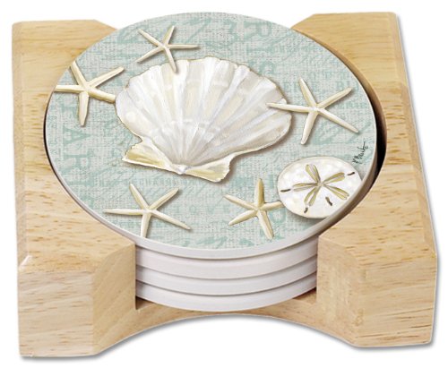 - Coasters are natural stoneware with decorative transfer print