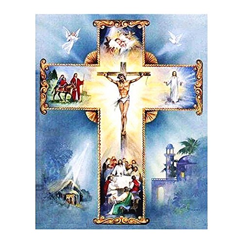FKUO Large 5D DIY Diamond Painting "cross" Religious belief Embroidery 2.8mm Round Diamond embroidery Fashion home decor (20 X 25 cm)