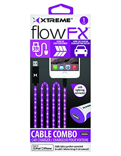 -. Feature : 3ft 8pin Flow FX Sync & Charge Cable w Car Charger / 8 pin connector to USB cable 1 Amp Car Charger Flat tangle-free design LED lights flow through the cable as the device is charging / Easily transfer music, photos and videos Cable length: 3ft (0.9 meters)