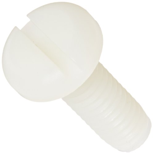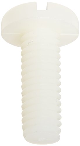 Nylon 6/6 Pan Head Machine Screw, Off-White, Slotted Drive, 1/4"-20 Thread Size, 3" Length, Fully Threaded, USA Made (Pack of 100)