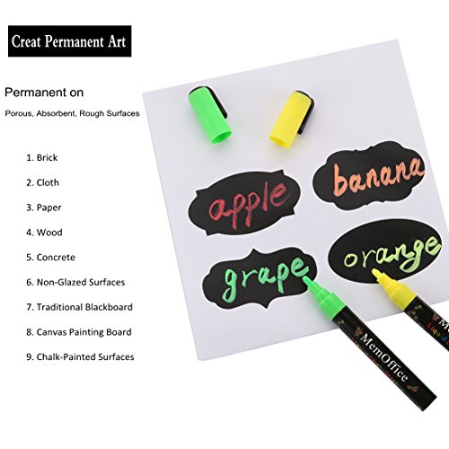 - WIDELY USE - ERASABLE on non-porous materials! PERMANENT on porous materials. PERMANENT ON TRADITIONAL CHALKBOARDS! Great for Restaurant Menu Boards, Bistro LED Writing Boards, Home Window & Mirrors, Car Windows, Kids Art, Marking dates on food Containers, Ceramic Mugs and much more.