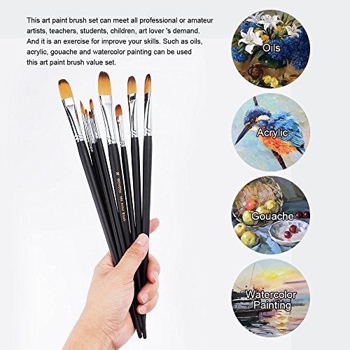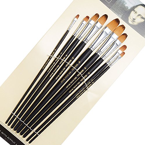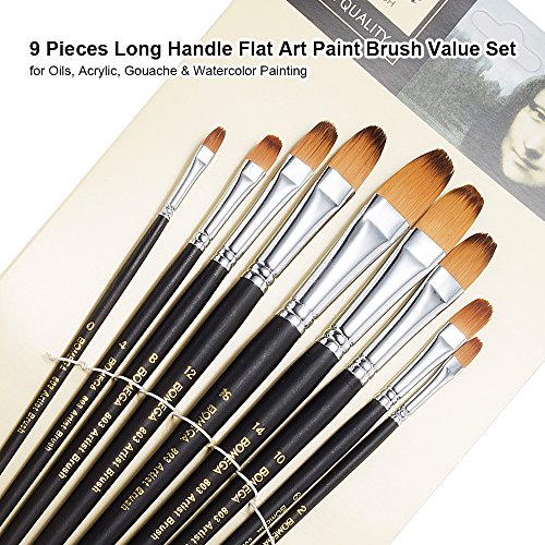 9 Pieces Artist Paint Brushes Nylon Filbert Paint Long Handle Value Set for Oils, Acrylic, Gouache & Watercolor Painting-Lightwish (Filbert Paint)
