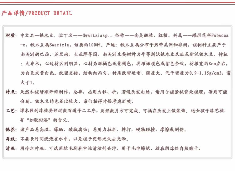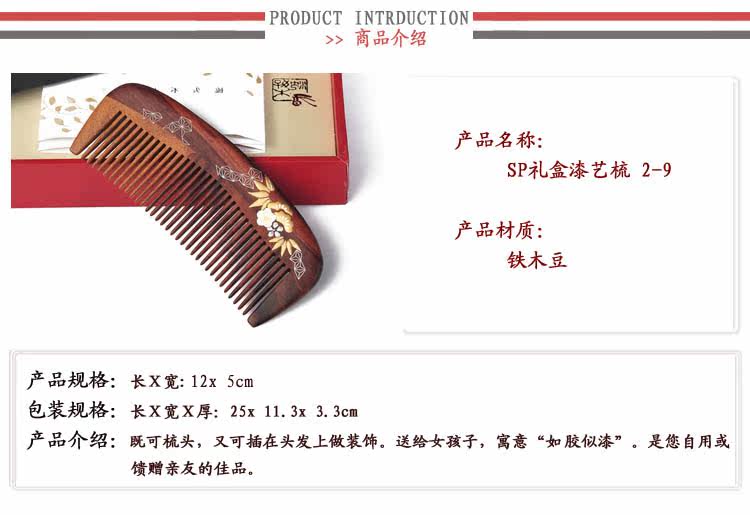 谭木匠 礼盒漆艺梳2-9 天然木梳子 褐色 生日礼物 防静电 送女友