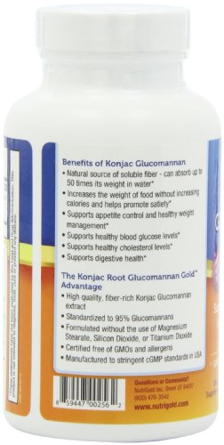 ReleaseDate : 2013-03-23 Studio : Nutrex Research, Inc. Publisher : Nutrex Research, Inc. Binding : Health and Beauty Product Description Glucomannan is a water-soluble polysaccharide extracted from the tubers (roots) of Konjac, which is cultivated as food in Japan and Indonesia. Because human digestive enzymes cannot break down this polysaccharide, it passes through the body largely intact, which is the reason it is classified a dietary fiber. Glucomannan is hygroscopic and the dry powder swells into bulky fiber because of its ability to absorb up to 50 times its weight while in water. Glucomannan's principal use is as a bulking agent to promote the feeling of "fullness" or "satiety", thereby helping to manage food intake. 0