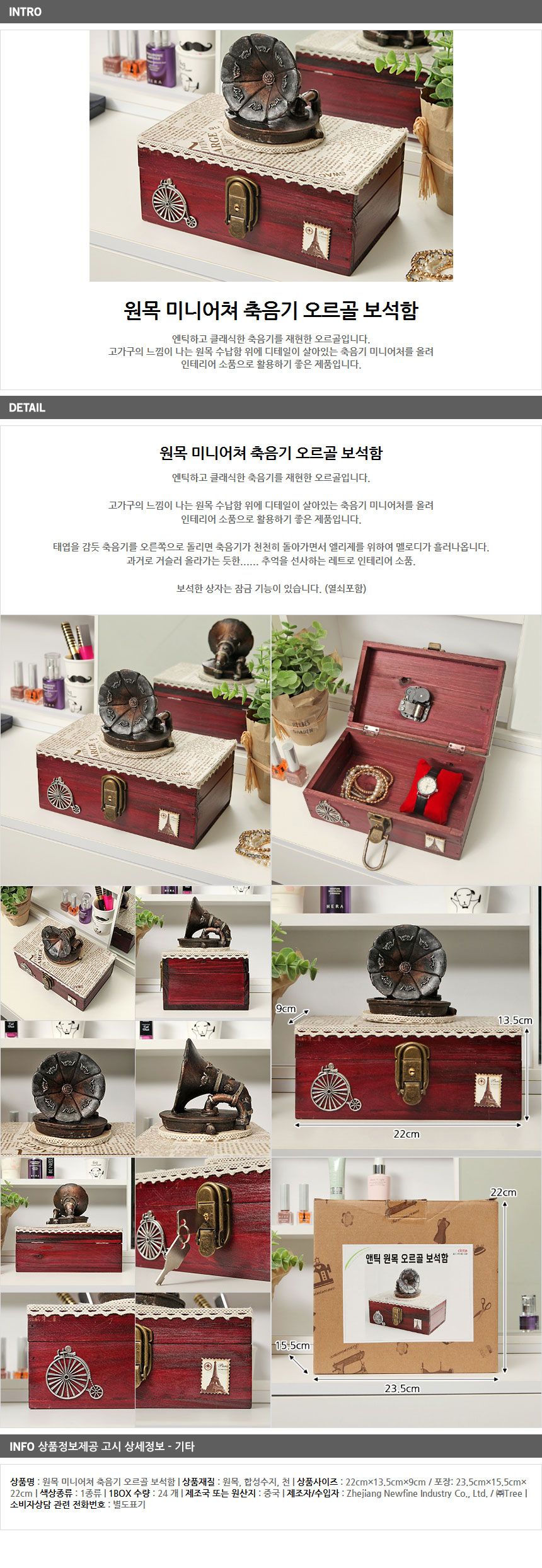 Props Miniature Gramophone Music Box Jewel Box Interior Wood