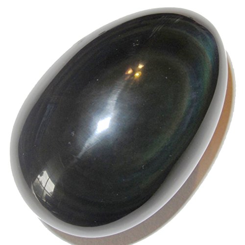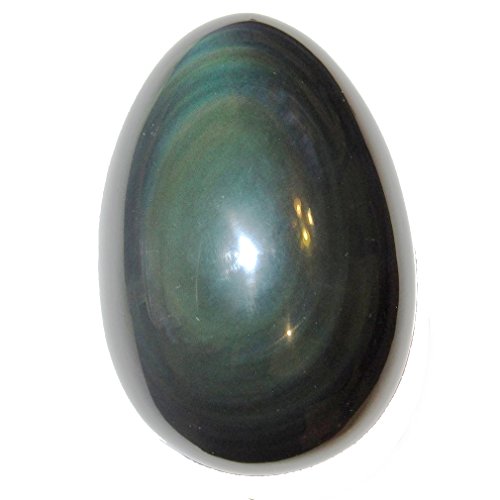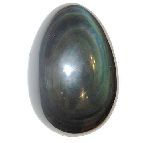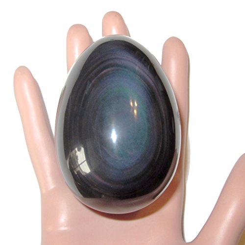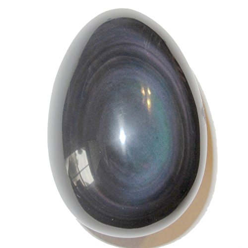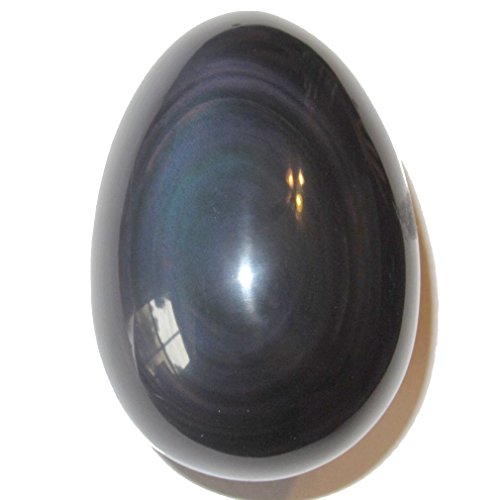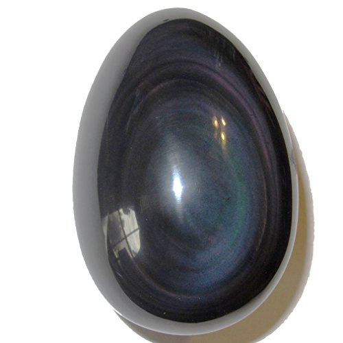 Your large and attractive egg is made from rainbow obsidian gemstone. Obsidian is formed from volcanic activity. It appears black in normal lighting, but under intense light you will see various rainbow patterns. Super shiny and polished, it has some lines, rings, and white pores along the surface that are characteristic of genuine obsidian. Receive this exact stone pictured when you order from Satin Crystals.