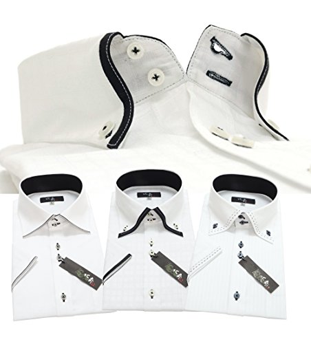 -. Title : (ホクサイ)葛飾北斎 ジャパンブランド 襟高 スリム3枚セット ワイシャツセット おしゃれ ボタンダウン ホリゾンタル yシャツ クールビズ 黒 半袖 ワイシャツ ビジネス 白 メンズ