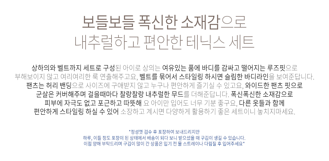 .같은 사이즈라도 체형에 따라 핏감이 조금씩 다를 수 있습니다.