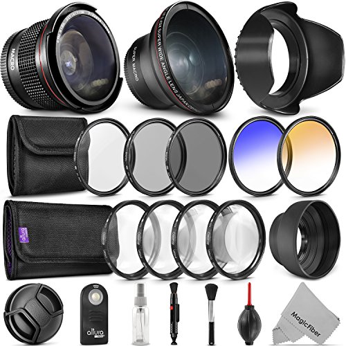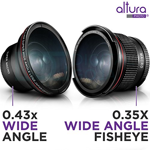 Kit includes: Altura Photo 0.35x Super Wide Fisheye & 0.43x Wide Angle Lenses + Altura Photo Remote Control (Not all camera models have infrared sensors for remote control shutter compatibility) + Altura Photo Filter Kit (UV, CPL, ND4) + Macro Close-Up Set + Tulip & Collapsible Lens Hoods + Center Pinch Lens Cap + 2 Color Filters + Altura Photo Cleaning Kit