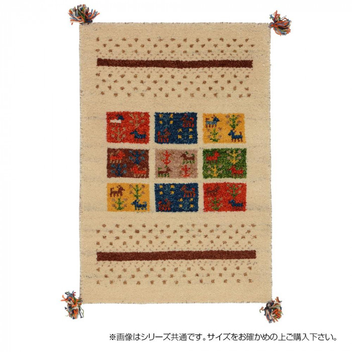 丁寧な手織り手法で使用時間の経過とともに味わいが深まる「ギャッベ」。オールシーズンご使用いただける素材で、しっかりとした密度&厚み約2cmなのでふかふかの座り心地をお楽しみいただけます。裏面も同素材で床にやさしい仕様です。 |