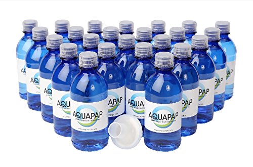 The use of Aquapap vapor distilled water in conjunction with the Hydrophobic Bacteria Filter reduces the risk of bacteria entering the mask and hose. Cleaner and safer than using the gallon container. Each bottle is intended to be a single daily fresh serving. easy to pack when travelling. Avoid bacteria contamination of pouring multiple servings from the same container. Reduces the risk of infection. Could reduce the risk of readmissions to the hospital.