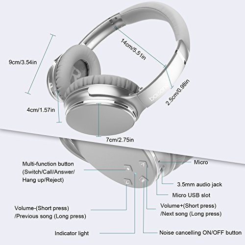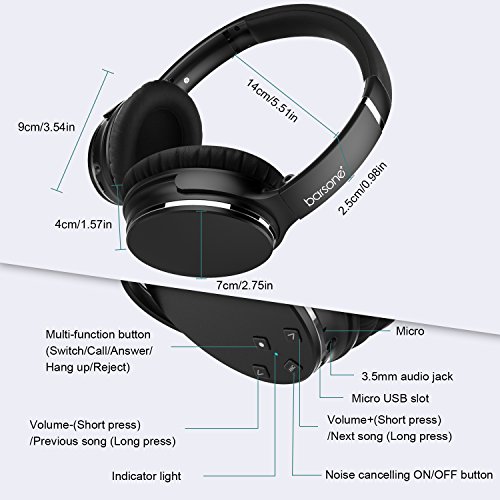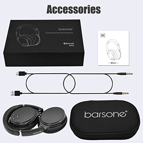 -. Brand : barsone -. Feature : Active Noise Cancelling Technology: Active Noise Cancelling (ANC) technology effectively reduces the noise of city traffic, drone of a plane cabin or hubbub in a busy office. Enjoy another pure music world / Light and Comfortable: With the large padded leather ear cushions, they are really comfy on the ears giving you maximum comfort whilst enjoying the music. The music quality is really good, giving out strong bass and transforming it into crisp sound / Foldable Headphone: Retractable headband design, 90°swiveling ear cups. The headphones are fold-able making it more compact when carrying it around. Headset come with carrying case, easy carry headphone on the go / Battery Durability: Enjoy music all the time when the battery dead using the 3.5mm audio cable. Charging about 2 hours, 15 hours music play time varying by the volume and music type. Portable and light weight design, good travel companion / Built-in Microphone: The headphones built-in microphone allows you to move effortlessly between music and calls. These Bluetooth headphones feature controls to keep you in control of your music while your device is tucked away -. IsAutographed : 0 -. IsMemorabilia : 0 -. Label : barsone -. Manufacturer : barsone -. PackageQuantity : 1 -. ProductGroup : Musical Instruments -. ProductTypeName : SOUND_AND_RECORDING_EQUIPMENT -. Publisher : barsone -. Studio : barsone -. Title : Barsone Active Noise Cancelling Headphones, Wireless Over Ear Hi-Fi Stereo Bluetooth Headphones with Mic