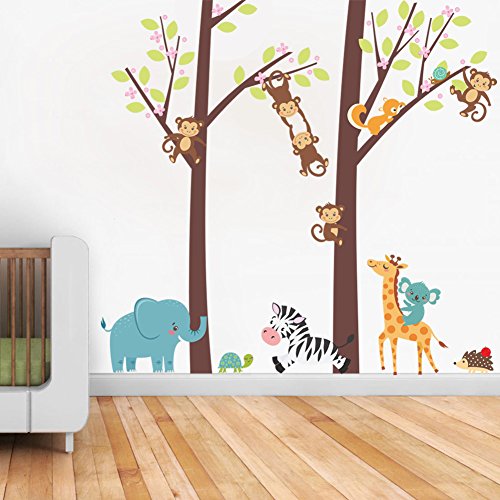 Woodland Arts 3ft x 3ft Jungle Wild Elephant Monkeys Zebra Giraffe Trees Zoo Animal Removable Vinyl Wall Decals Stickers for Children Room Nursery