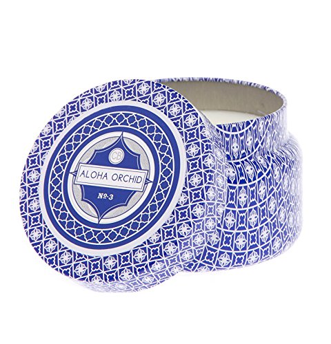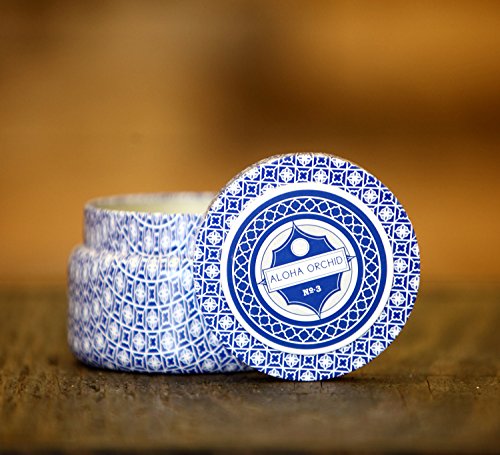 Fine Aloha Orchid Scented Candle in Blue Pattern Metal Travel Tin