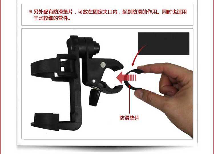 2.目前市场上的可旋转快拆水壶架,夹口只能调节成 90度和180度两个角度,而本产品可以360度任意调节,除了90和180度外,15度 30度 45度 等等左右角度都可以调节
