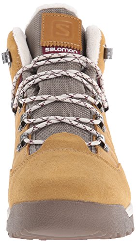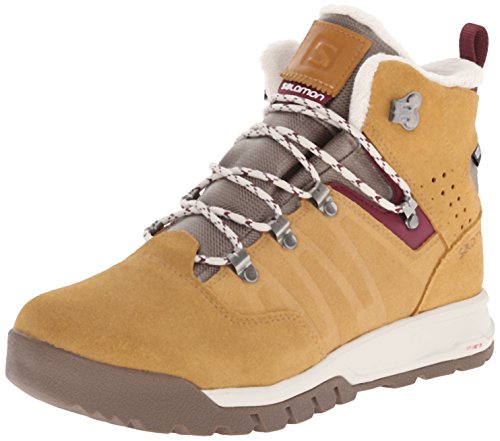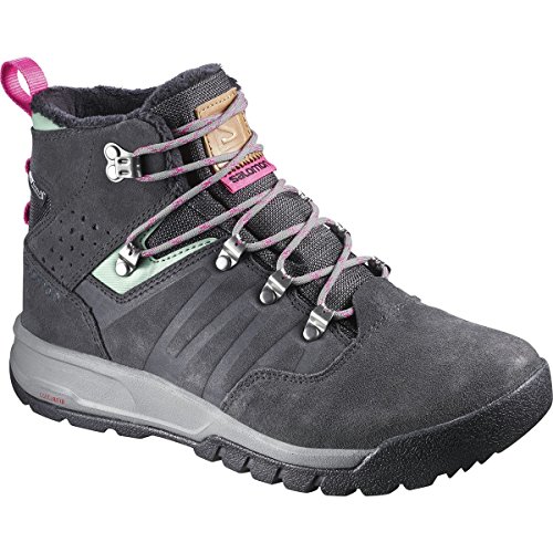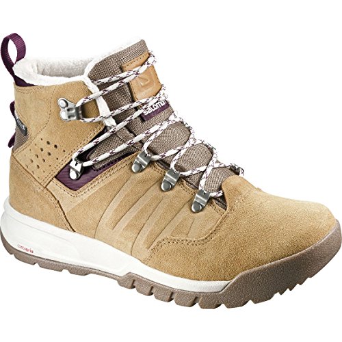 FEATURES of the Salomon Women's Utility TS CSWP Boots Upper: Waterproof nubuck leather, Water resistant textile, Protective heel cap, Sensifit, Gusseted Tongue Lining: Membrane: Climashield waterproof Outsole: Ice grip rubber compound, Non-marking contagrip Midsole: Injected EVA Sockliner: Die cut OrtholiteFeature