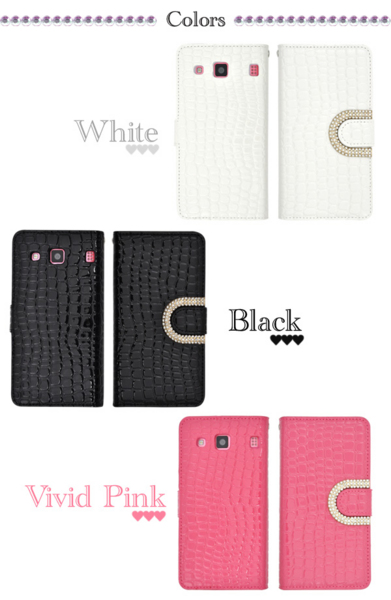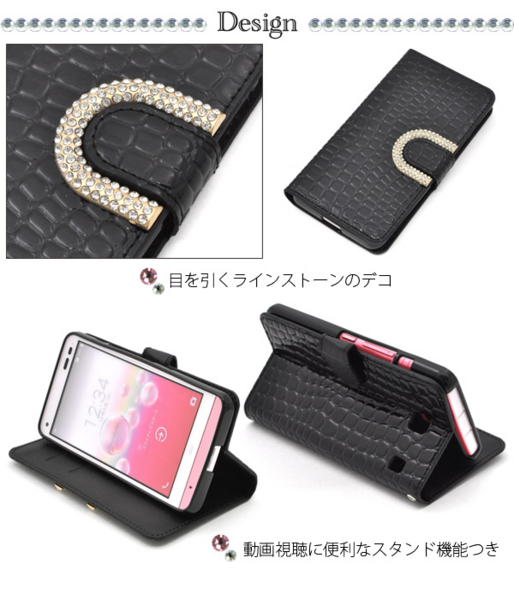 クロコダイルレザーデザインにデコをあしらった女性にピッタリのポーチケースです。