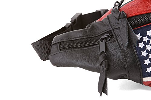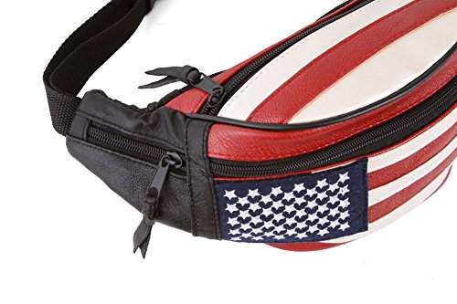 -. Feature : Patriotic Fourth of July Fanny Pack / Dimensions : 13 inches by 4 inches by 5 inches / Genuine Lambskin Leather / 5 section pouch / Adjustable strap closure