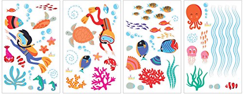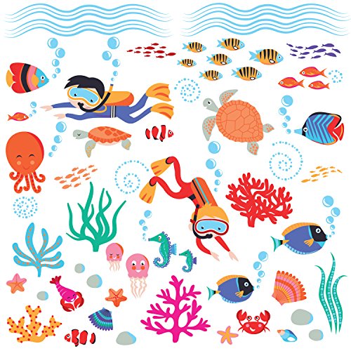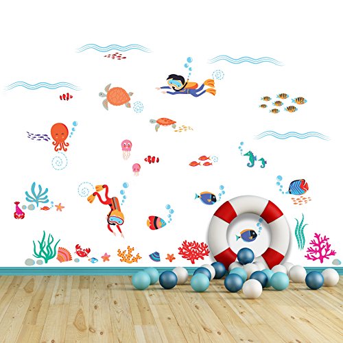 Diving into the Sea & Underwater Creatures Peel & Stick Wall Sticker Decal for Nursery or Kids Room