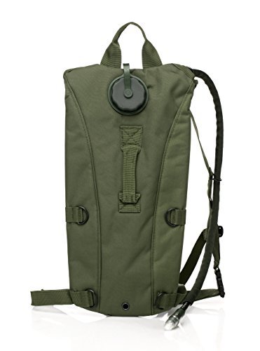 Hydration Pack is a heavy duty hydration pack suitable for hiking, running, biking, skiing, and other outdoor activities. It is constructed from rugged heavy-duty nylon and is resistant to tears and abrasion. The fully removable water bladder has a 3 liter (100 ounce) capacity. Water is drawn via the hands-free hydration hose with bite valve, gently biting the valve to open up the flow of water. Sleek and compact in design, only 17" x 8" x 1.5" in size and 15 ounces in weight .