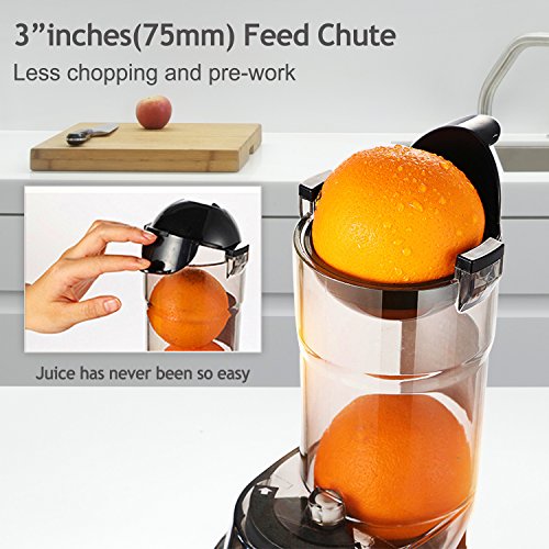 75 mm Wide Chute Design with 75 mm wide chute for more easy putting ingredients into the slow juicer, save more preparation time and help reduce cleanup time.