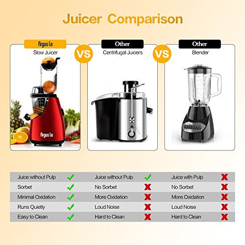 ✔ High Efficient Masticating Juicer - The auger spins at 65 rpm and extracts more juice and less oxidation compared with centrifugal juicers, gives you healthier original juice.