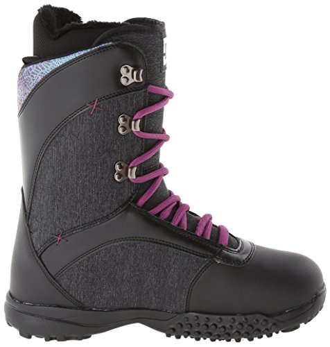 Studio : DC Shoes Publisher : DC Shoes Binding : Apparel Product Description Now that you have the confidence and the skills to go all over the mountain, you need the proper boots. The DC Women's Karma Snowboard Boot features Direct Power lacing for a secure and comfortable fit, and a low-profile sole that shaves weight and improves board feel to provide a riding experience that puts what you've come to expect from those clunky rental boots to shame. Direct Power Lacing uses reliable traditional lacing and upgrades it with specially designed overlays that increase leverage for optimal shell closure and a custom fit. The Red liner features heat-moldable EVA foam for a comfy custom fit and EVA insoles that absorb shock and dampen vibrations for a smooth ride. Unilite replaces rubber in the outsole to make it super-lightweight and improve rebound without sacrificing durability or traction. 0