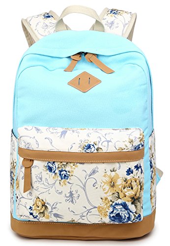 -. Brand : Geek-M -. Color : Blue -. Department : mens -. Feature : Material: High quality and lightweight Canvas / Size: 13*17.7*6.3 in (L*H*W) / High volume Backpack with embroidery design in front side, side pockets and straps of the backpack / This bag can accommodate a 14-inch-computer / Front compartment has organizer with media pocket, multiple open pockets -. PackageQuantity : 1 -. ProductGroup : Apparel -. ProductTypeName : LAGE -. Title : Preppy Korean Style Canvas Flower Floral Casual Daypacks College Student Satchels