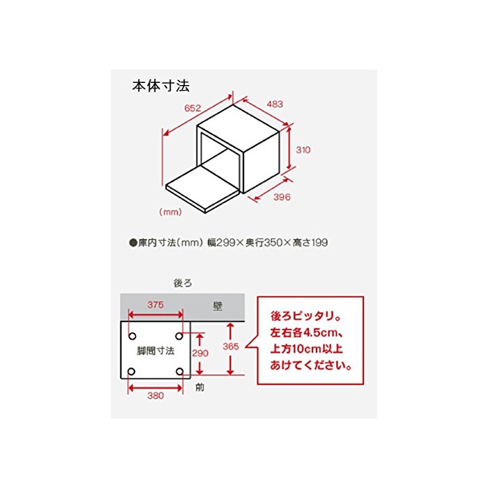 본체 사이즈:폭483×(길이)깊이396(※핸들 등을 만들어 넣음(담는 그릇·상자 등) 최대(길이)깊이치수:439mm,도어 개방시의(길이)깊이치수:652mm※)×높이310mm