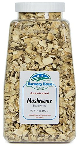 Harmony House Foods, Dried Mushrooms, Bits & Pieces (6 oz Quart Size Jar)