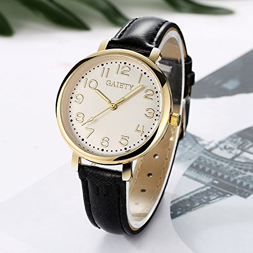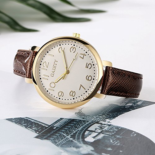 -. Title : Gaiety Analog Quartz Leather Watch Women with Second Hand Arabic Numbers G144