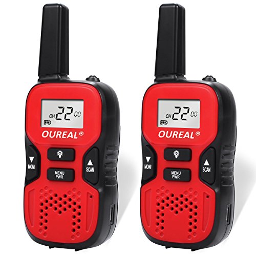 OUREAL Kids Walkie Talkies Toys Long Distance 22 Channel FRS/GMRS 2 Way Radio for Kids (1 Pair) Red