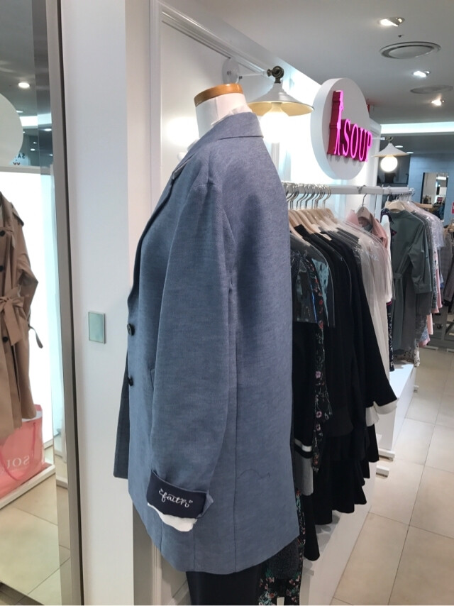 캐주얼 일자핏 자켓으로 소매 레터링 포인트를 주어 멋르럼을 더한 스타일입니다