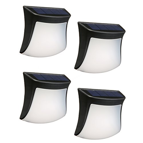Solar Wall Lights, GLISTENY 3LED Solar Atmosphere Lights Outdoor White 6500K Solar Panel 1.2V 1300mAh IP55 Waterproof Daytime Bright Lit Night Small Atmosphere for Fence Garden Corridor (4 Packs)