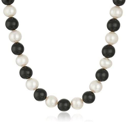 -. Title : Sterling Silver Freshwater Cultured Pearl and Onyx Necklace and Bracelet Jewelry Set