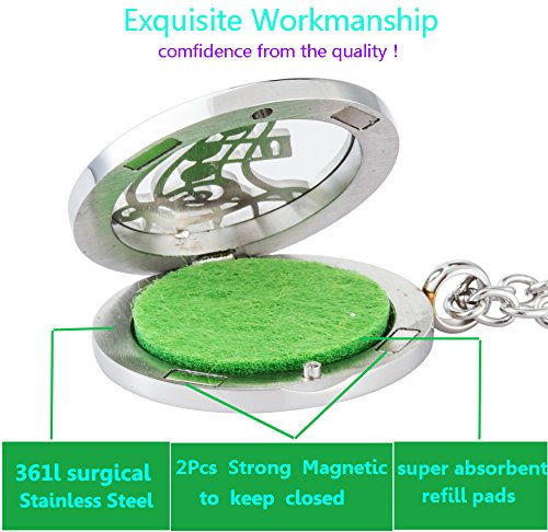 - 🌼 STRONG MAGNETIC CLOSURE – Solid and smooth oil diffuser locket back (30mm / 1.18” in diameter) The strong magnetic closures and solid back protection of the pendant lets you wear and enjoy your favorite essential oils scent anywhere.You never need worry about the oil touching your skin or staining clothes. Each necklace pad measures 3mm x 22mm (.12”x .87”) for a thicker, more premium quality.