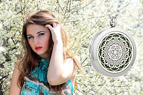- 🌼 UNIQUE STYLE PENDANT - The oil diffuser locket necklace set comes with a 23.6" chain and Ploshing cloth. Our lightweight jewelry gift set is artisan-crafted from hypoallergenic surgical grade 316L stainless steel for long life and durability – which means your essential oil diffuser jewelry won’t irritate the skin, tarnish or rust over time.