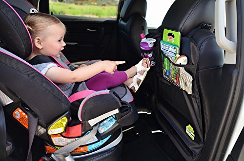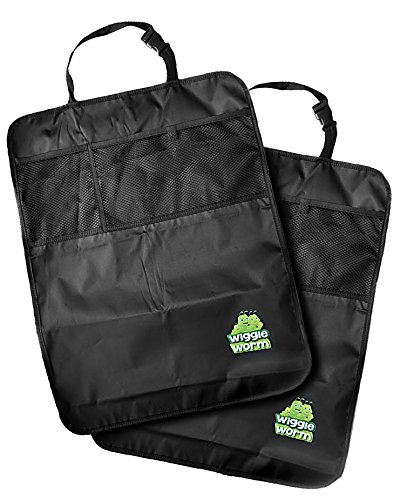 * DURABLE - Tough Dual Layer design featuring 420D polyester * FITS ALL VEHICLES SEATS - Top and Bottom adjustable buckles to fit some of the largest SUV seats. No elastic straps around your seat! * GREATER COVERAGE OF YOUR SEAT -Wiggle Worm Kick Mats are wider and longer than some of the others! Size: 23.5" X 17.5" * ORGANIZE YOUR KIDS TOYS - Room enough to hold an Ipad. * DOUBLE SIDED - Use one side with the organizer pocket, or turn it over for just full-length kick mat protectors * EASY TO KEEP CLEAN - Wipe down with a damp cloth * 2 COUNT - You get 2 Kick Mats. Use both in your vehicle, or install one in the grandparents vehicle * QUALITY GUARANTEED - You're protected by our Lifetime 100% Satisfaction Guarantee!