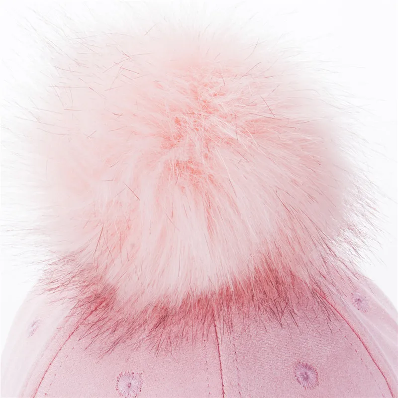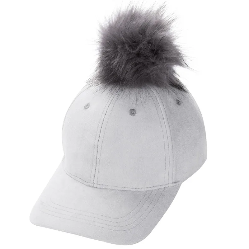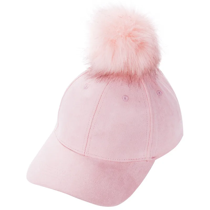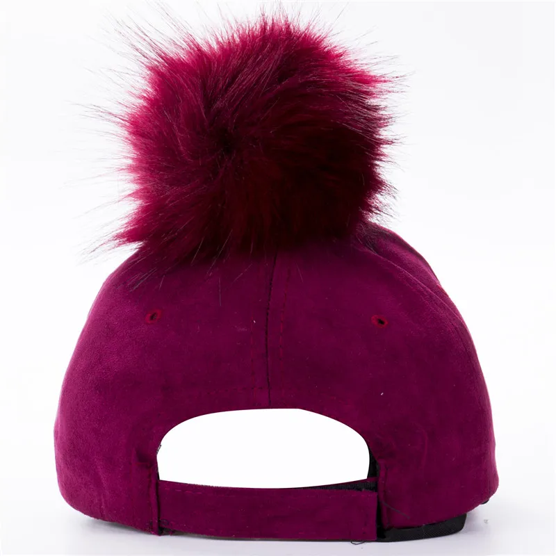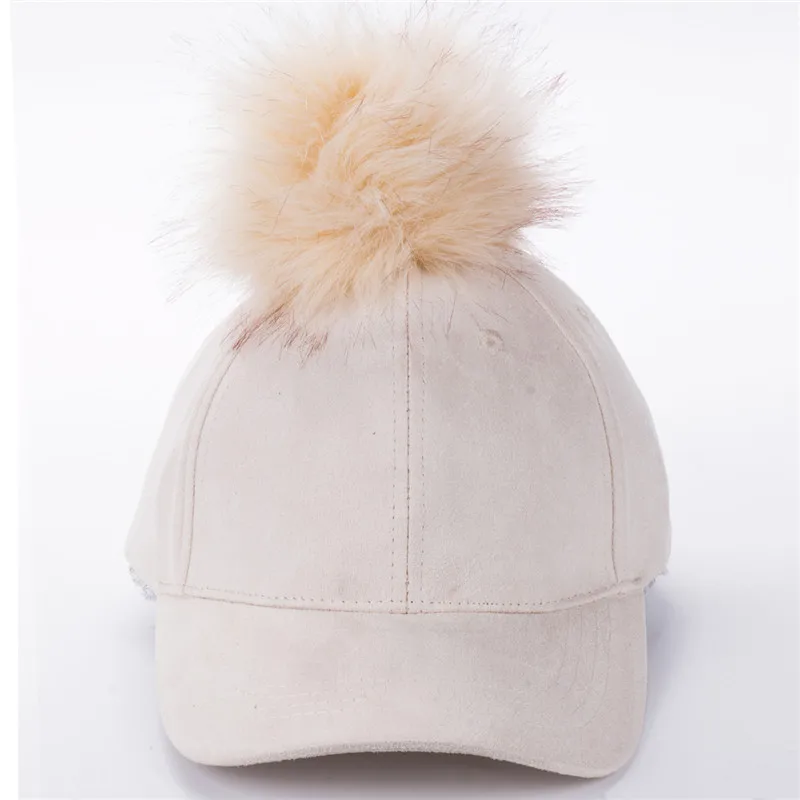Model Number:Women Faux Fox Fur Pompom Ball Suede Adjustable Baseball Cap