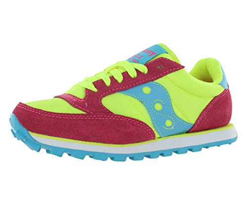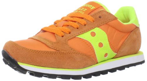 Retro sneaker featuring bright, bold colors in classic Saucony Jazz silhouette