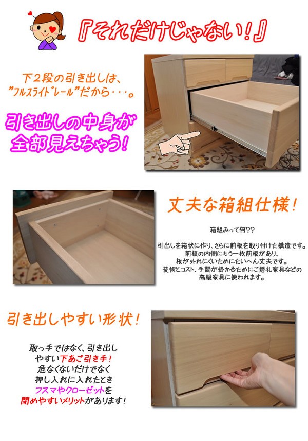 【材質】前板・・桐集成材本体・・プリント紙化粧繊維板フラッシュ加工