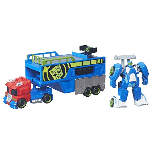 -. Title : Playskool Heroes Transformers Rescue Bots Optimus P.R.Ime Racing Trailer