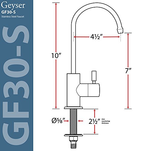 Geyser GF30-S Stainless Steel Water Filter Faucet with 1/4" White PE Tubing for Reverse Osmosis