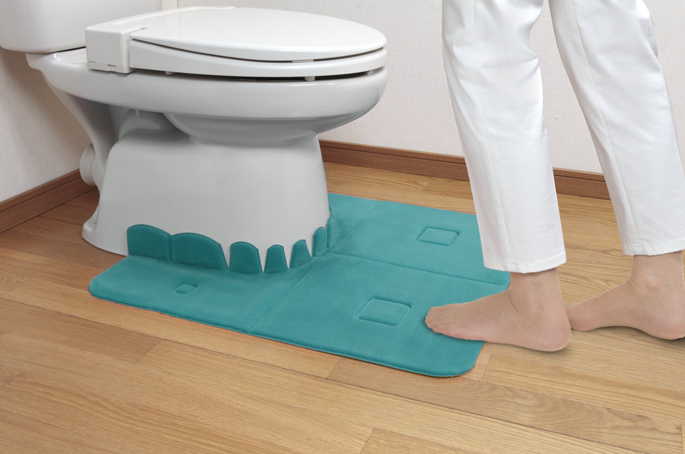 Adjust the rising part of the mat to the feet of the toilet bowl and press the mat with the hand so that no gap is formed