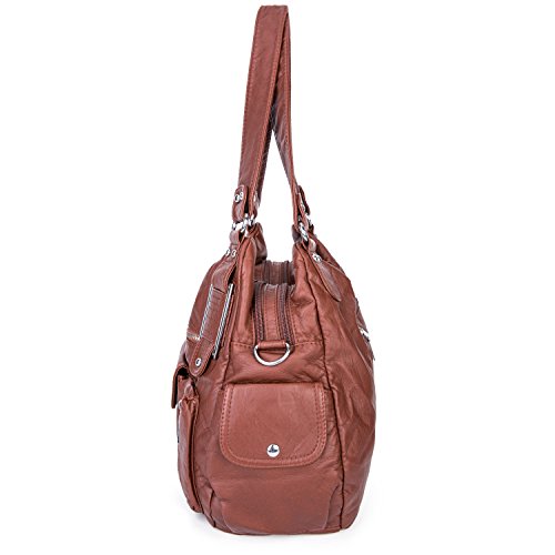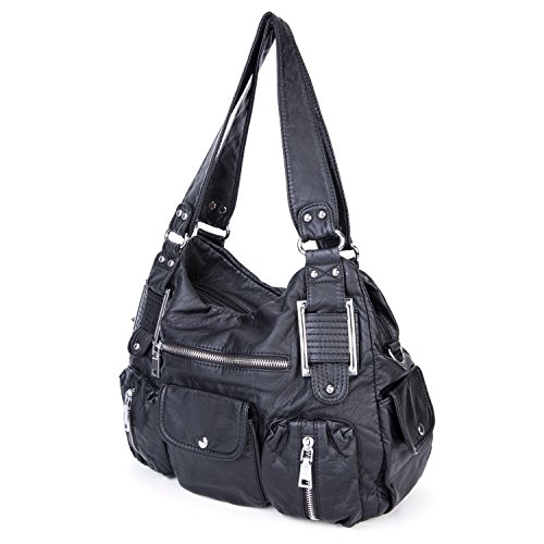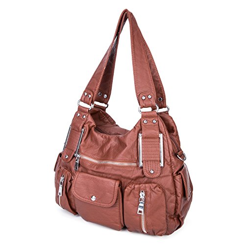 -. Feature : MATERIAL. Soft washed PU synthetic leather features with high quality silver hardware and smooth zippers. / DIMENSIONS: 16.14 * 12.2 * 2.75" (L * W * H ). WEIGHT: 1.6lb. Handles: 29.5", Long Straps: 39.3". Purse can comfortably carry your daily things such as iPad, iPad Mini, 12" laptop or other tablet not heavy and bulky at all. / STRUCTURE. 4*FRONT SMALL POCKETS+ 2* MAIN ZIPPER POCKET with 4 COMPARTMENTS+ 2*SIDE POCKETS+1*BACK POKET. Various roomy pockets keeping all of your stuff organized, fits your makeups, umbrella, cellphone, wallet and kids stuff such as diapers and wipes etc. / CONVERTIBLE STYLE. With adjustable additional attachable shoulder strap, this tote bag can be transferred into hand bag and shoulder bag, very creative and functional. / CLASSIC FASHION DESIGN. Good design makes it quite versatile and match your everyday clothes perfectly, suitable for office lady, traveling, business meeting and shopping everyday use.